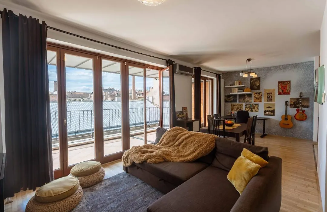 Apartament Sunny Penthouse Front Of Szimpla Kert jest około 2 km od Zamek Królewski w Budapeszcie. Apartament ten oferuje transfer z/na lotnisko i całodobową ochronę dla wygodnego pobytu.